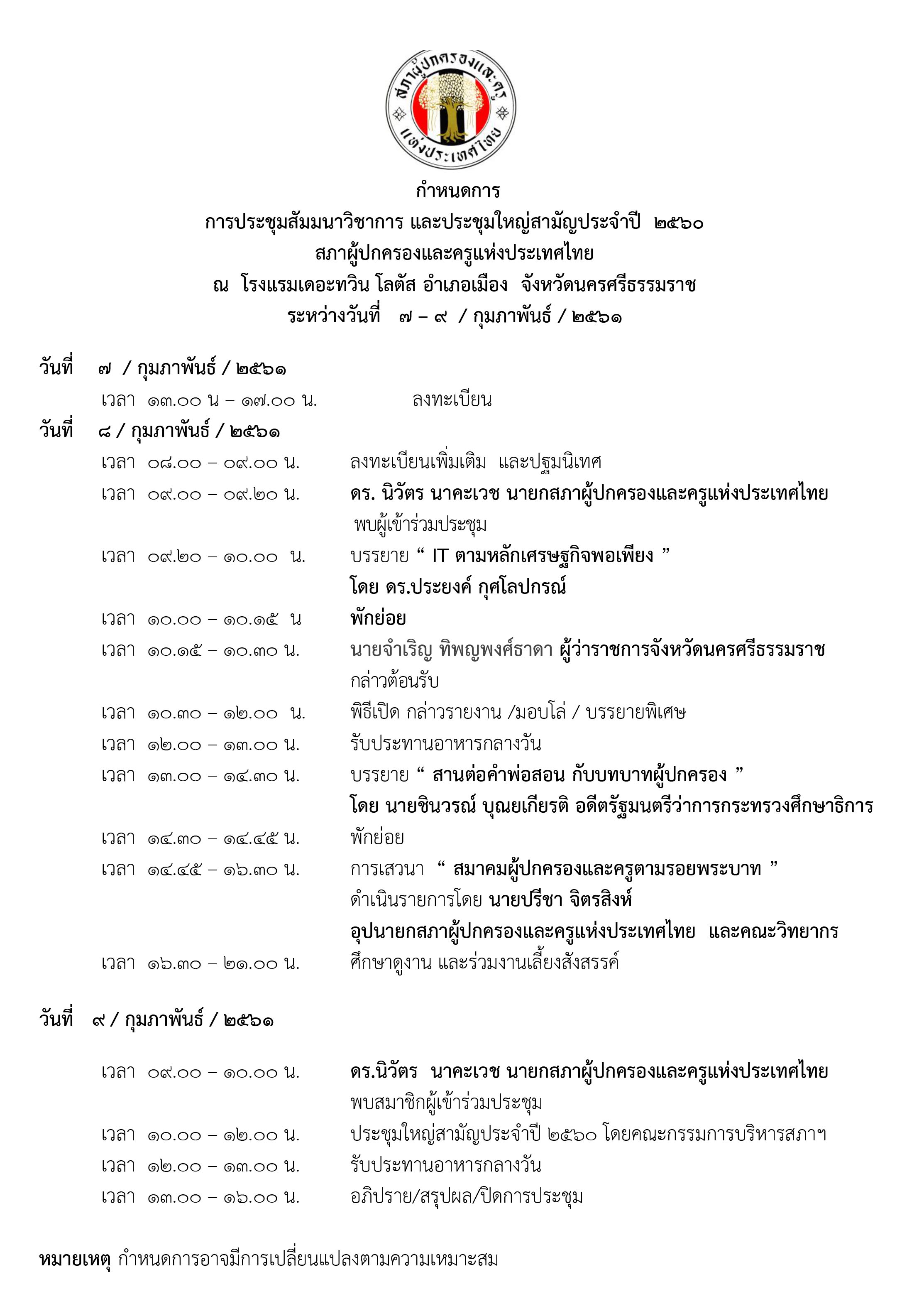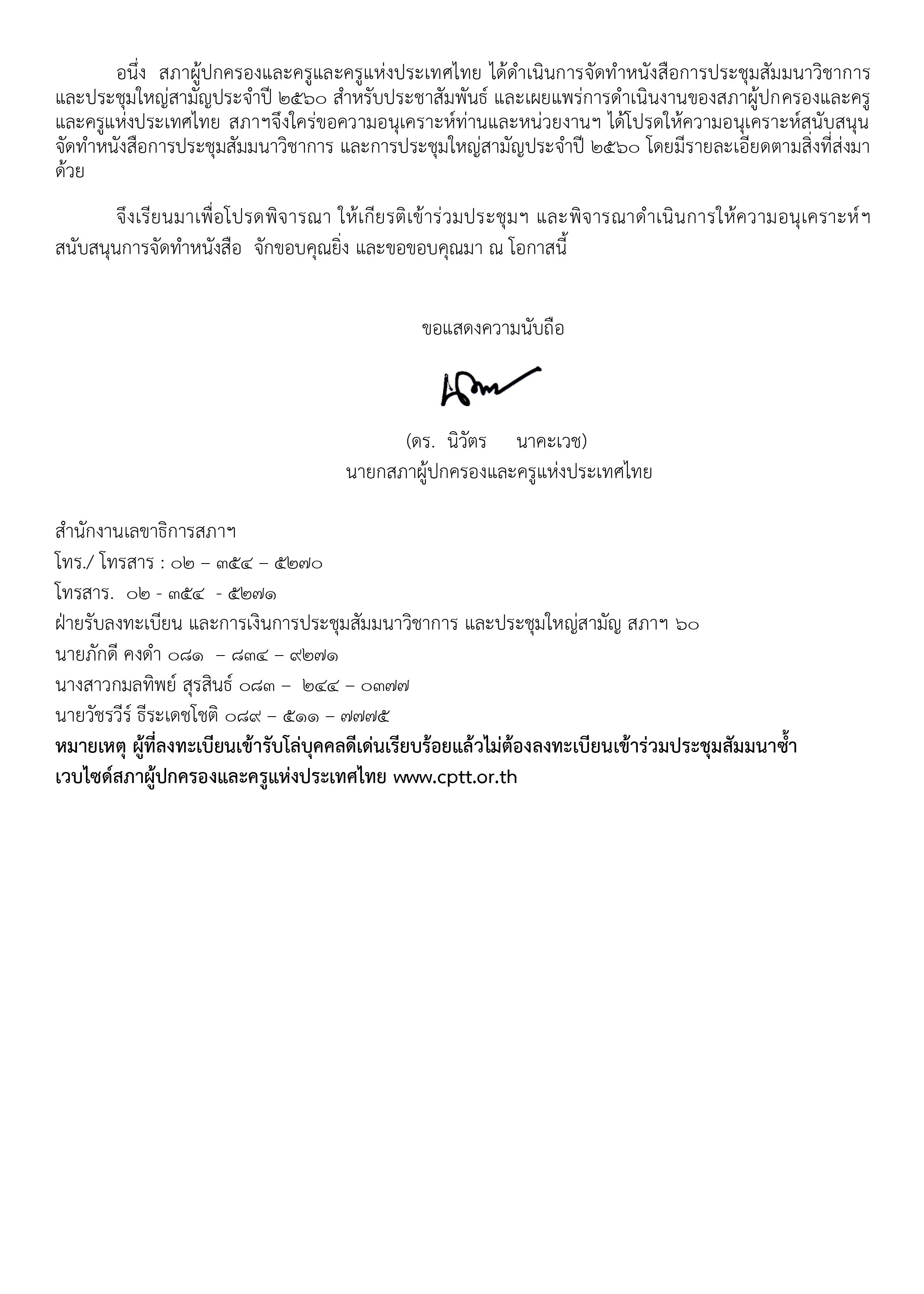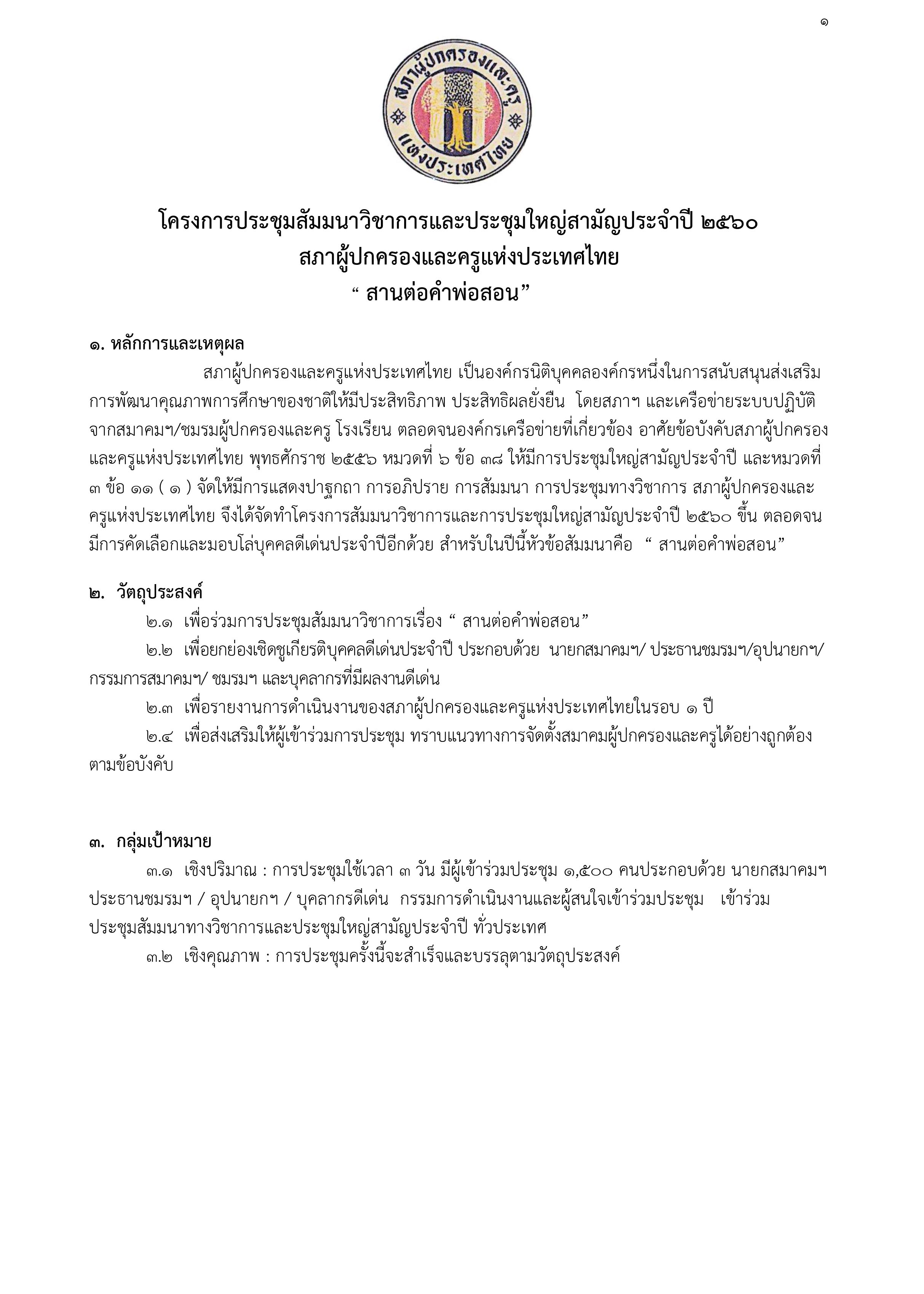 ประจำปี 2560 สภาผู้ปกครองและครูแห่งประเทศไทย