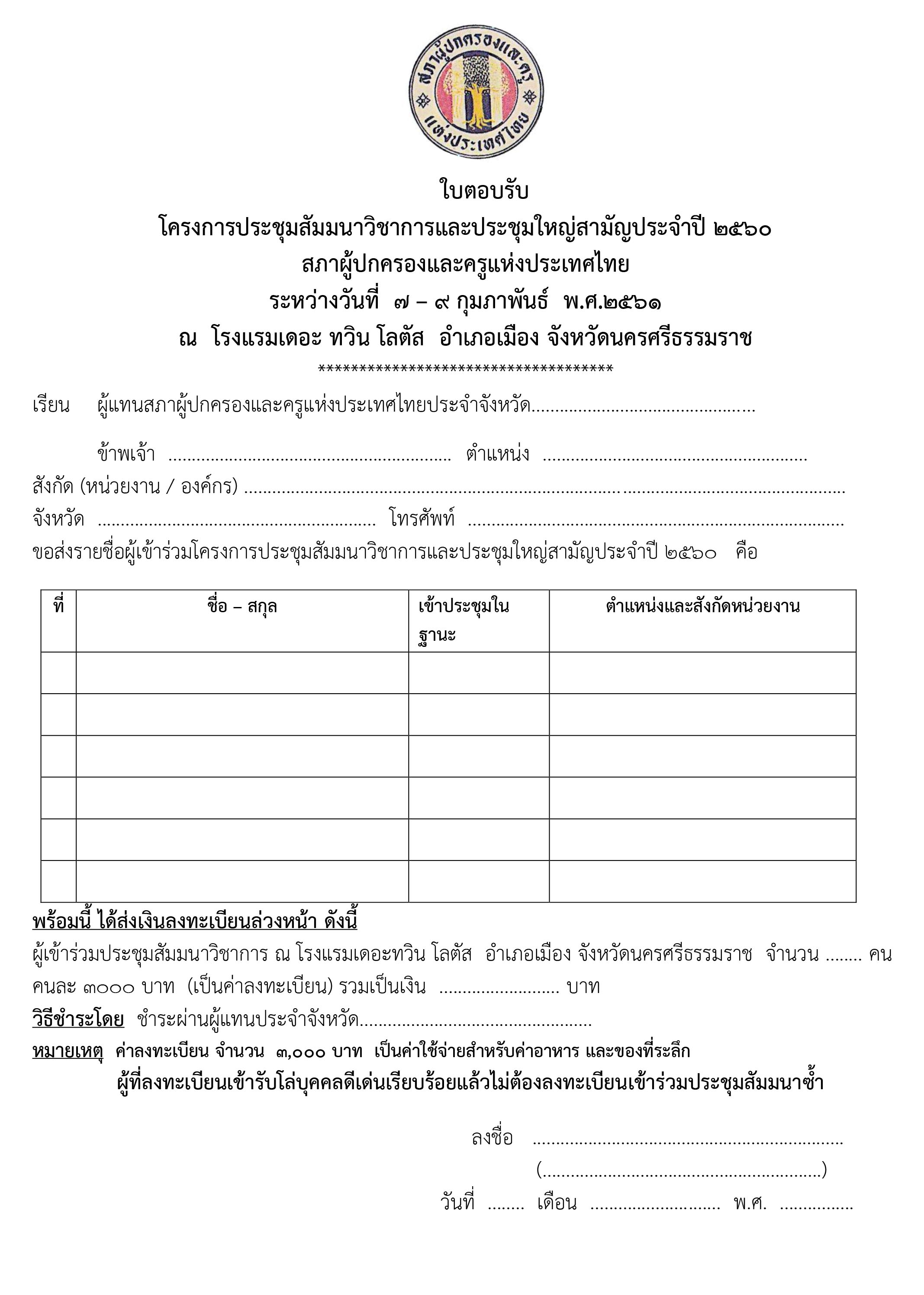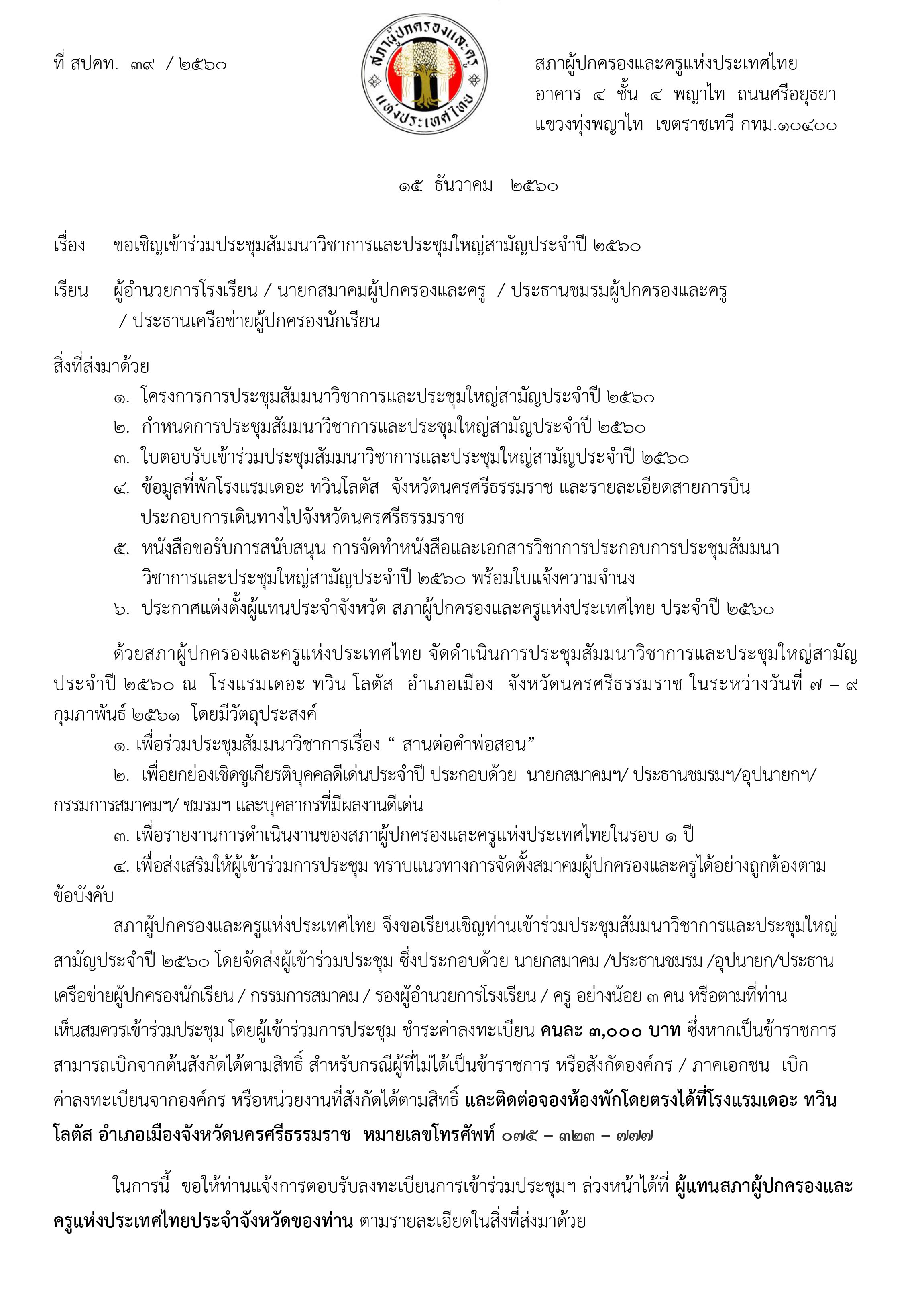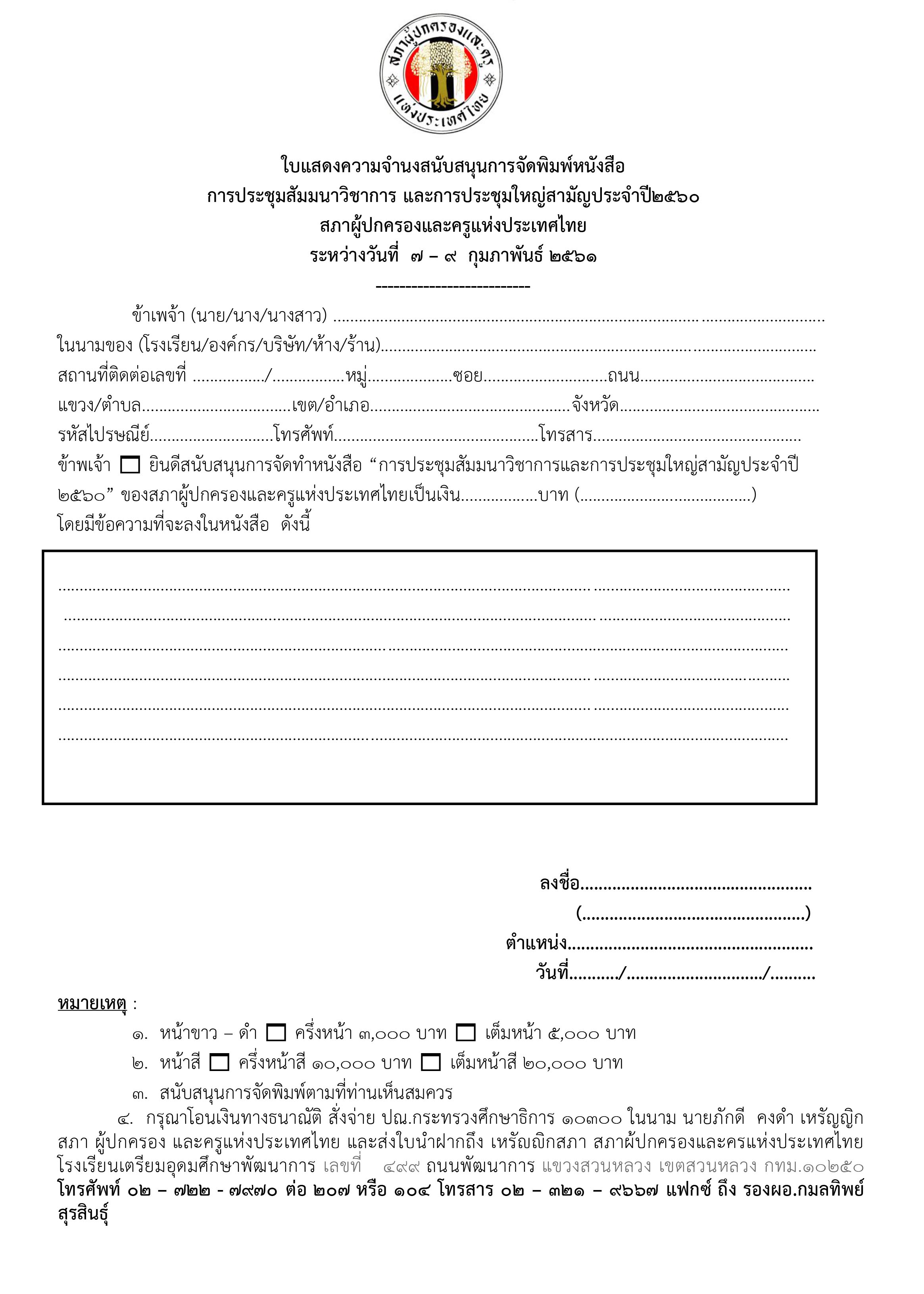 ประจำปี 2560 สภาผู้ปกครองและครูแห่งประเทศไทย